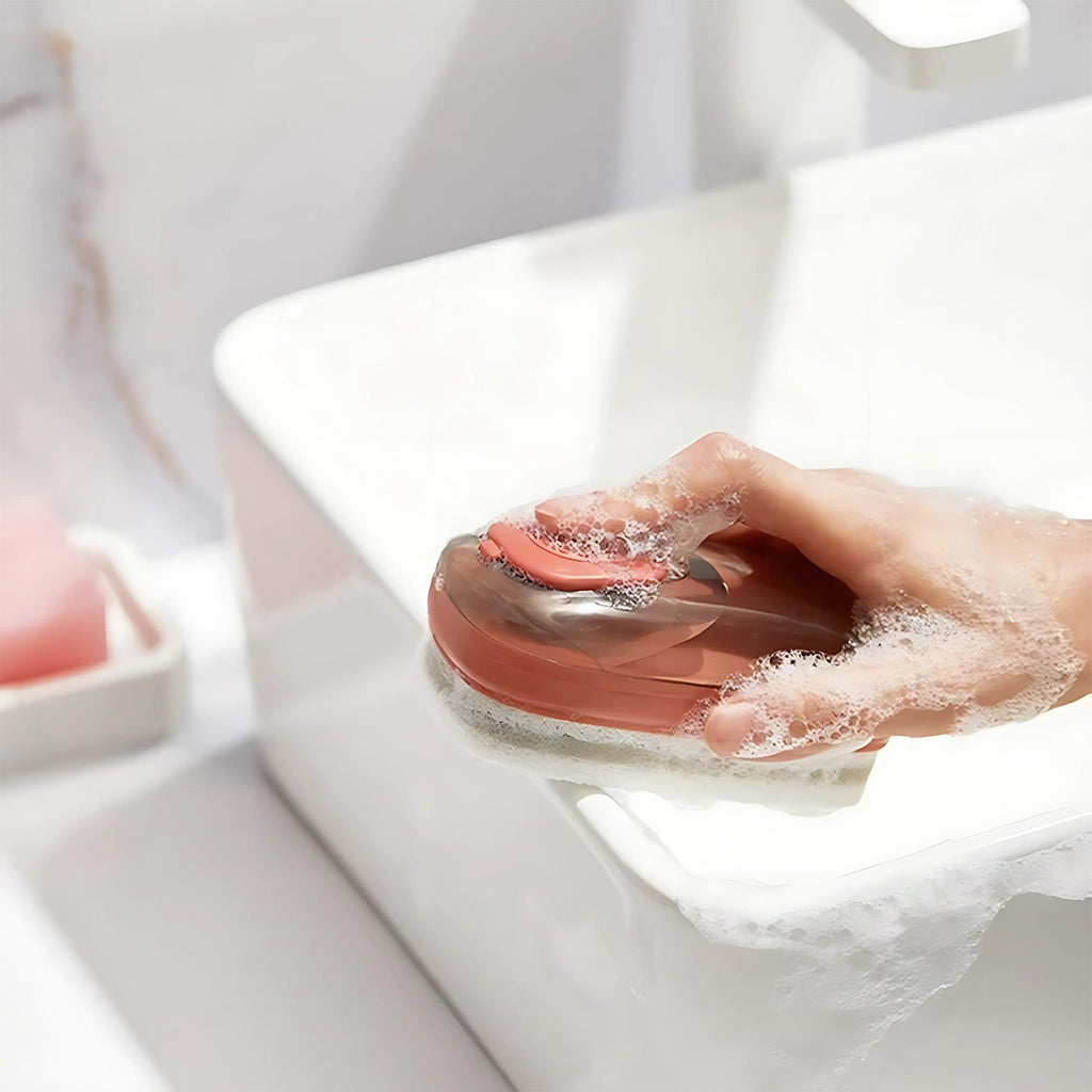 cleaning brush, detergent brush, scrubber brush, sponge scrubber,dual surface cleaner, multipurpose cleaner,bathroom cleaner, kitchen scrubber, laundry brush, tile cleaner, sink scrubber,soap dispensing sponge brush, refillable cleaning brush
