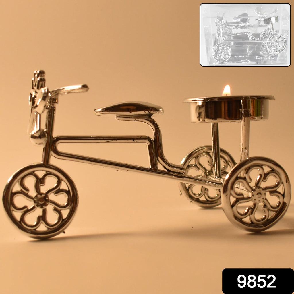candle holder, tealight holder, diya stand, decorative lighting holder, home décor candle accessory,home decoration, festival decor,gift for housewarming,bicycle candle holder, tricycle tealight stand, metallic tealight holder